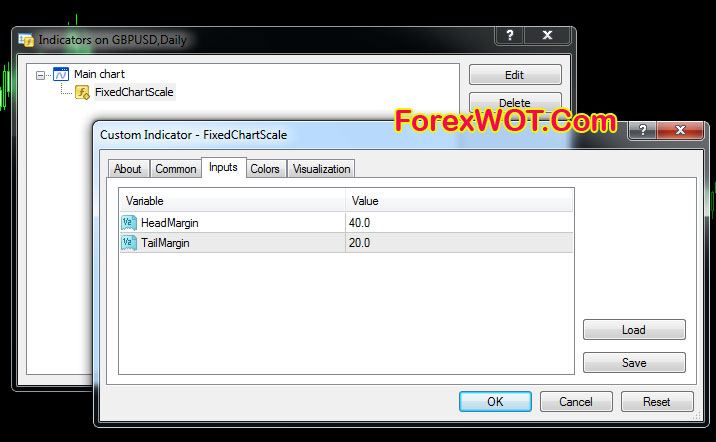 Automatic Fixed Scale Forex Indicator – It adds top and bottom margin to the chart. Both can be adjusted separately.