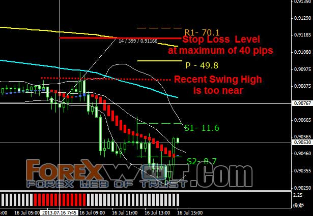 - Set the Stop Loss above the most recent swing high or at most 40 pips away from the entry level.